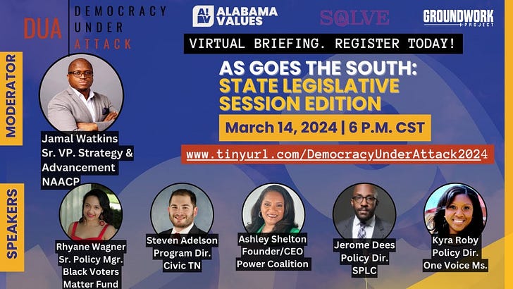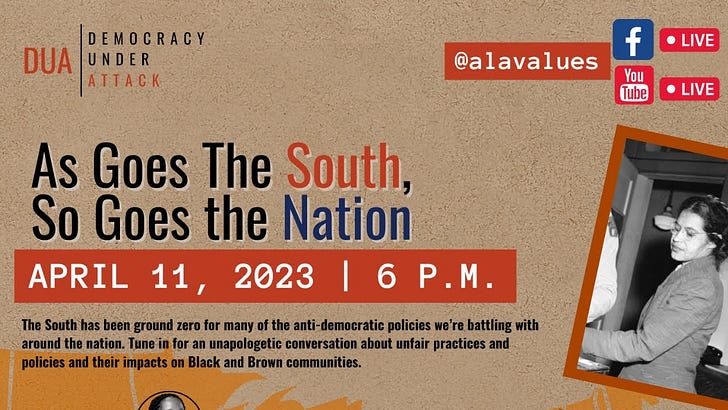 On the heels of a major attack on democracy in Tennessee this week and the rise in anti-democratic legislation across the South, Alabama Values…